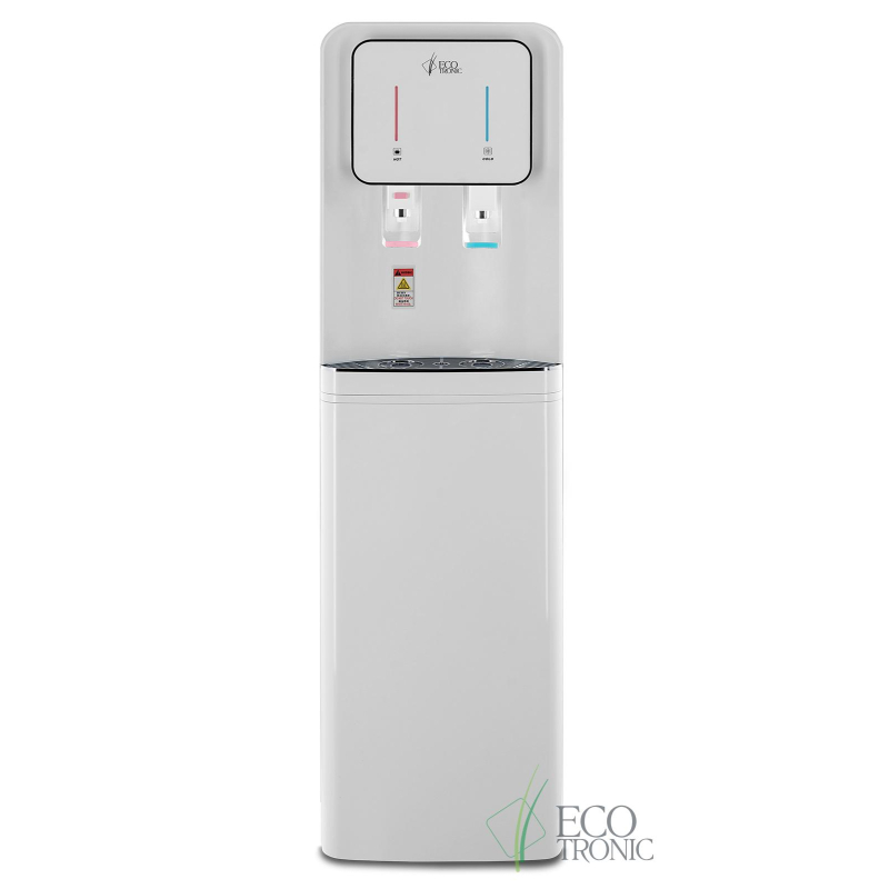 Напольный пурифайер Ecotronic A60-U4L с компрессорным охлаждением и с UF системой очистки воды. Бак холодной воды 7л. Бак горячей воды 5л. Мощность нагревательного элемента 800-1000Вт. Защита 'от детей' на кране горячей воды. Краны "нажим кружкой". Цвет: белый с серебряной окантовкой. Ресурс комплекта картриджей, в зависимости от исходной воды составляет от 6000 до 12000 литров. Сделано в Южной Корее. Обращаем Ваше внимание, что стаканодержатель в комплекте поставки отсутствует.Обращаем Ваше внимание, на то, что стаканодержатель НЕ ВХОДИТ в комплект поставки.Комплектация от производителя: пурифайер, фильтры, трубка пластиковая 3-5 м, кран врезки