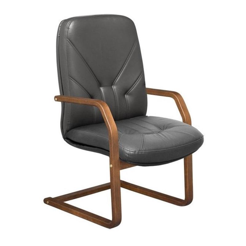 Конференц-кресло Менеджер черный/орех (натуральная кожа, дерево орех)