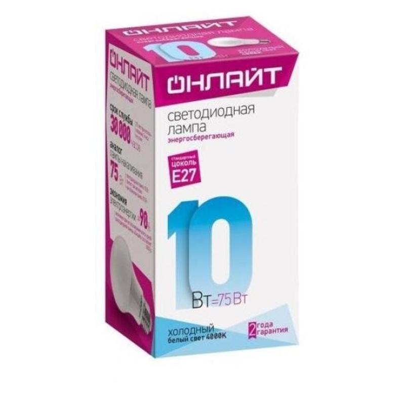 Лампа светодиодная ОНЛАЙТ 10 Вт Е 27 грушевидная 4000 К холодный белый свет
