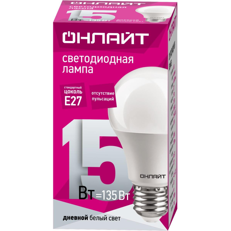 Лампа светодиодная ОНЛАЙТ OLL, А 15Вт E27 6500К 1350Лм 230В 61151 Яркая, энергоэффективная светодиодная универсальная лампа ОНЛАЙТ предназначена для основного освещения. Имеет стандартный цоколь Е27 и форму груши, что позволяет использовать практически во всех осветительных приборах. Интегрированный драйвер с интегральной микросхемой защищает от помех и скачков напряжения, гарантируя стабильную работу лампы. Имеет матовый рассеиватель защищающий глаза. Надежные светодиоды высокой яркости выдают ровный световой поток с широким углом рассеивания без вредных для зрения пульсаций.Преимущества:Высокоэффективные планарные светодиоды Epistar;Работает при стандартном напряжении;Мощность 15 Вт эквивалентна лампе накаливания 135 Вт;Цветовая температура 6500К (холодный белый);Алюминий и композитные материалы в составе радиаторов;Диапазон рабочих температур -40… 40°C;Срок службы 30 000 часов;Экономичные;Безопасные.Применение:Общее освещение;Наружное освещение.Внешний вид и/или характеристики товара могут быть изменены производителем в соответствии с производственным процессом.