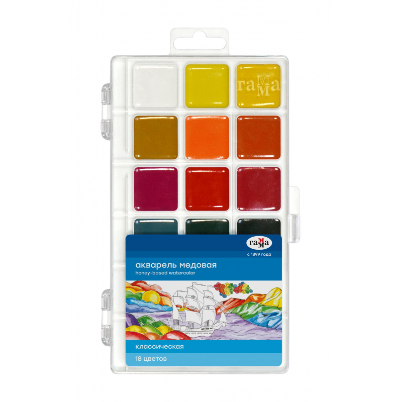 Акварель в обновленной подложке: больший объем краски в кюветах дает еще больше возможностей для творчества. Цвета яркие и чистые благодаря качественному прозрачному связующему веществу в составе акварели. Чтобы краски не смешивались во время рисования, расстояние между кюветами увеличено. Если нужно получить новый оттенок, на крышке предусмотрена палитра. Отделение для кисти с удобными зонами захва- ребенок сможет быстро достать кисть, не переворачивая подложку. Удобный замок и прочные петли плотно фиксируют крышку. Кисть в комплект не входит.