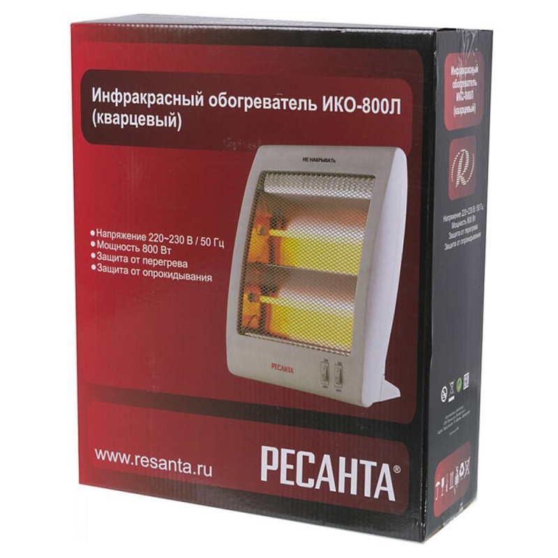 Обогреватель инфракрасный ламповый (кварцевый) Ресанта ИКО-800Л представляет собой электронагревательный прибор с теплоотдачей инфракрасным излучением. Инфракрасное излучение проходит сквозь воздух и обогревает предметы и стены помещения, от которых, в свою очередь, нагревается воздух. В отличие от систем конвективного отопления (тепловентиляторы, электрические радиаторы, конвекторы, стационарные батареи), при использовании которых, сначала нагревается воздух по всему объему помещения, а от него предметы и тела находящиеся в нем, система лучистого отопления, примененная в данных обогревателях, имеет ряд преимуществ: Несколько более низкая температура воздуха в помещении, при комфортной температуре на поверхности предметов, пола, стен, создает эффект свежести - воздух не высушивается; · Экономия электроэнергии; Естественная конвекция (тепловое движение объемов воздуха) снижает количество пыли, поднимаемой с пола; Обогреватели не создают "эффекта жженого воздуха" в отличие от обогревателей с высокой температурой рабочей поверхности.