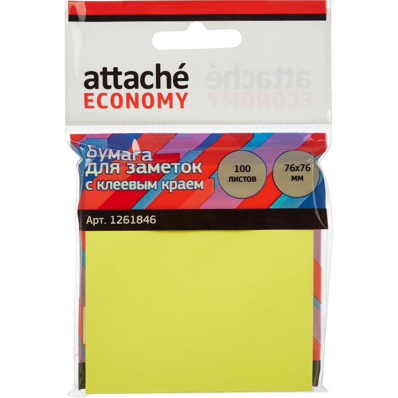 Стикеры Attache Economy 76x76 мм неоновый желтый (1 блок, 100 листов)