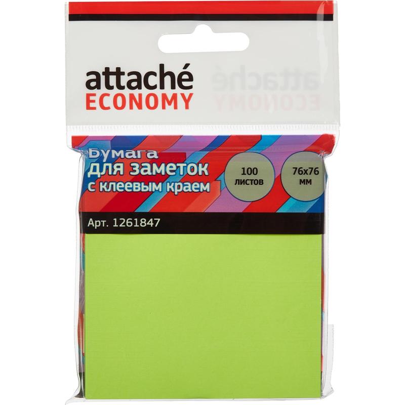 Стикеры Attache Economy 76x76 мм неоновый зеленый (1 блок, 100 листов)