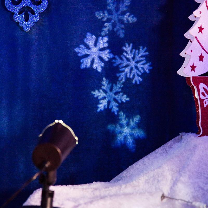 LED-проектор проецирует изображения снежинок на поверхности с расстояния до 15 метров и работает от сети 230 Вольт. Устройство поможет создать праздничную атмосферу и почувствовать приближение новогодних праздников где угодно: на корпоративе, частной вечеринке, семейном ужине. Белые светодиоды экономичны, безопасны и долговечны, а корпус имеет защиту IP44, поэтому проектор рассчитан на длительную работу как дома, так и на улице. В комплекте идет понижающий трансформатор на 14 В, который делает устройство бесшумным, что дает возможность использовать его в качестве ночника. Рекомендуемое расстояние для проекции: до 15 метров. Площадь проекции: 3.5x3.5 м с расстояния 5 м.