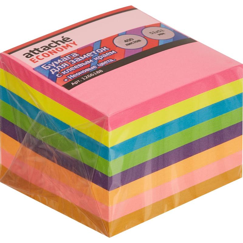 Стикеры Attache Economy 51x51 мм неоновые 8 цветов (1 блок, 400 листов)