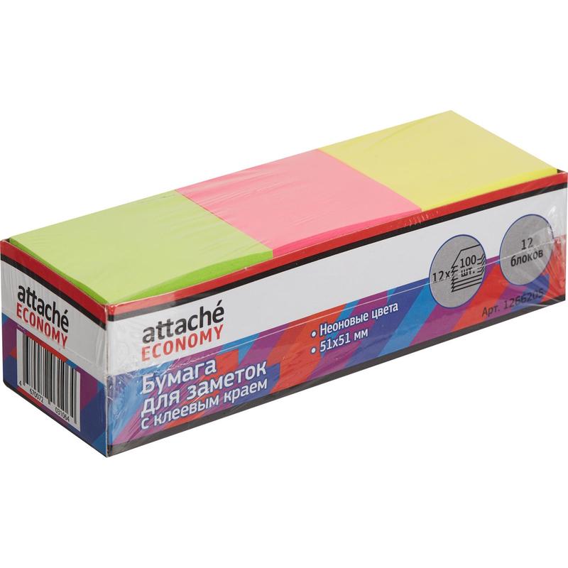 Стикеры Attache Economy 51x51 мм неоновые (12 блоков по 100 листов)