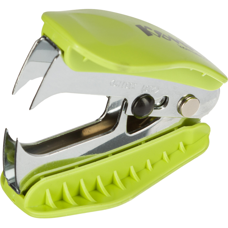 Антистеплер Комус предназначен для удаления скоб № 10, № 24/6 и № 26/6. Рабочий механизм антистеплера выполнен из высокопрочной стали, корпус - из высококачественного зеленого пластика, следы износа которого не будут заметны даже после многократного использования. Позволяет разжать закрепленные скобы более качественно, не нанося повреждений ни материалу, ни кончикам пальцев. Наличие фиксатора обеспечивает удобное хранение в закрытом положении. Размер изделия: 57.5x47 мм. Товар упакован в индивидуальную картонную коробочку.