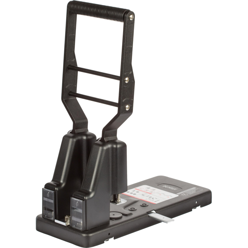 Дырокол мощный Attache Selection обладает цельнометаллическим прочным корпусом черного цвета. Для удобства эксплуатации снабжен высоким рычагом пружинного действия и оснащен стальным рабочим механизмом для одновременного пробивания 2-х отверстий диаметром 6 мм. Дырокол одновременно перфорирует до 290 листов бумаги плотностью до 80 г/кв.м. Расстояние между пробиваемыми отверстиями: 80 мм. Прорезиненная основа предотвращает скольжение во время работы и образование царапин на рабочей поверхности стола. Дырокол имеет линейку с делениями на форматы A3, А4, А5, B3, B4, B5, B6 для удобной фиксации бумаги на необходимом расстоянии. Отметка на линейке 888 позволяет использовать вместо дырокола на 4 отверстия. Контейнер для конфетти легко открывается и закрывается, исключая рассыпание бумажных остатков. Размеры изделия в открытом состоянии (ДxШxВ): 350x155x415 мм. Перед началом работы внимательно изучите инструкцию. Расходные материалы не представлены в ассортименте производителя и в ассортименте компании Комус.