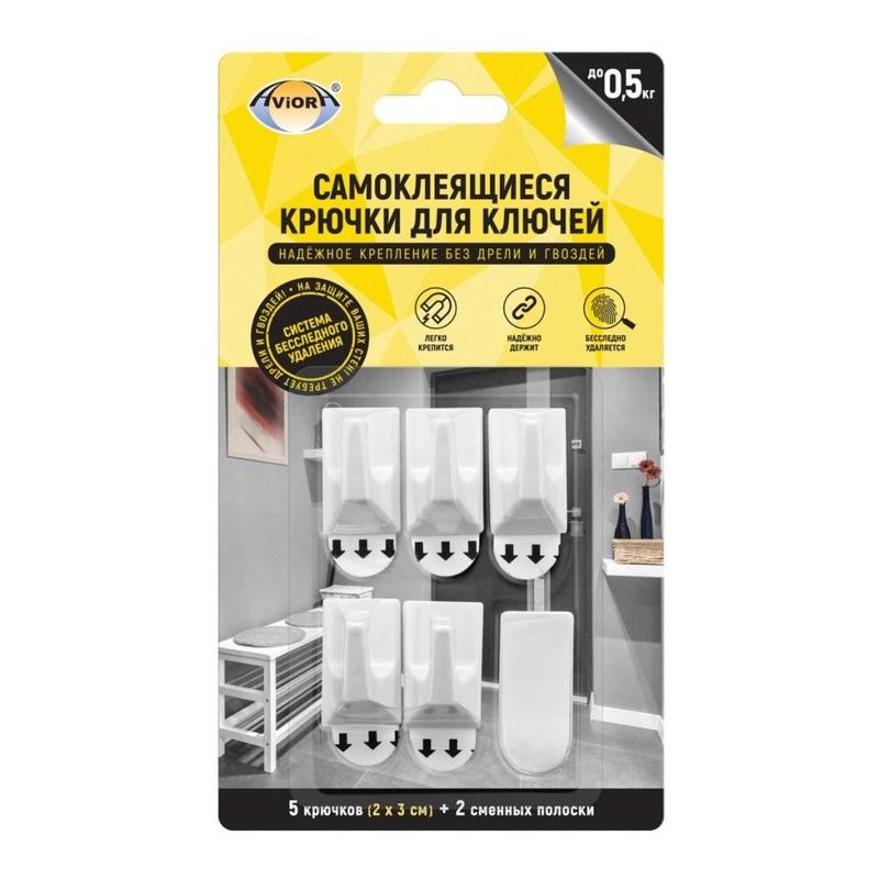 Крючок для ключей Aviora самоклеящийся белый до 0.5 кг (5 штук)