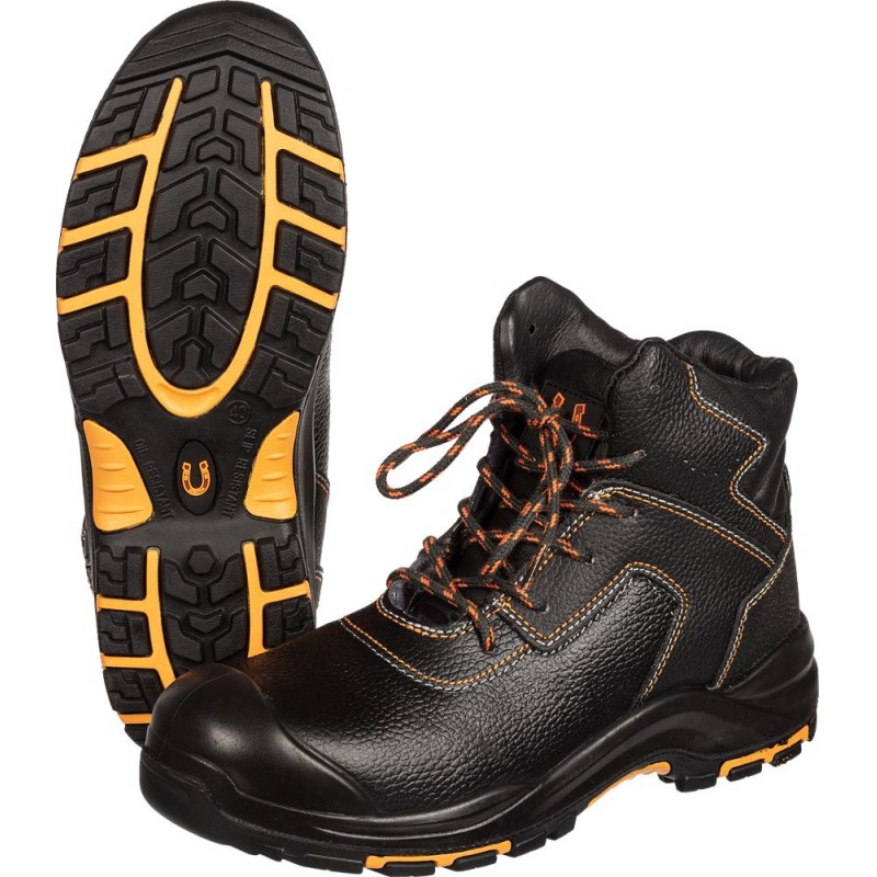 Верх обуви: кожа 2 мм. Утеплитель: натуральный мех (овчина), высота ворса 15 мм. Подносок: укрепленный, композитный (поликарбонатный) Мун200 Дж. Стелька: анатомическая, натуральный мех. Подошва: двуслойная, полиуретан и нитрильная резина (ПУ-Нитрил). Метод крепления: литьевой ТР ТС 019/2011. Термостойкие нитки, шнурки, отсутствие металлической фурнитуры, мягкий язычек.