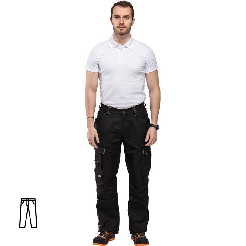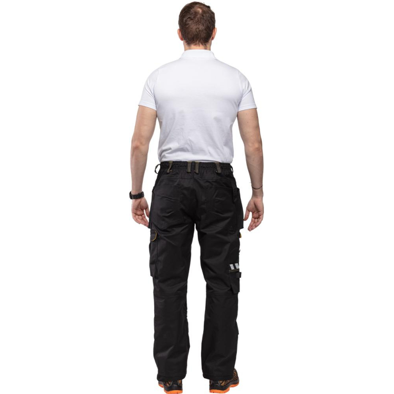 Рабочие мужские брюки модели Dimex 620. Выполнены в черном цвете. Размер 58, рост 182-188. Изготовлены из смесовой ткани - 46% хлопок, 16% полиэстер, 38% эластомультиэстер. Плотность ткани 240 г/кв.м. Брюки оснащаются большим количеством карманов, при этом их расположение не портит общий вид рабочих брюк, что делает их отличным выбором для ИТР и руководителей. Рабочие брюки Dimex 620 оснащены дополнительными секциями под наколенники, выполненными из сверхпрочной ткани Cordura, благодаря этому данная область рабочих брюк защищена от стирания, разрывов и порезов. Высококачественные светоотражающие элементы 3M делают сотрудника более заметным в условиях плохой видимости. Усилительные накладки из кордуры на коленях и по низу штанин. Передние и накладные карманы, набедренный карман, карманы для телефона и ручек, задние карманы и карманы для наколенников. Петля для молотка, карман для инструментов, держатель и петля для ножа. D-кольцо. Усиленный шов в промежности. Запас для удлинения 4 см. Светоотражающие полоски на штанинах. Предназначены для защиты от общих производственных загрязнений. Отлично подходят для выполнения различных видов работ в летний сезон. Соответствуют стандартам ТР ТС 019/2011.