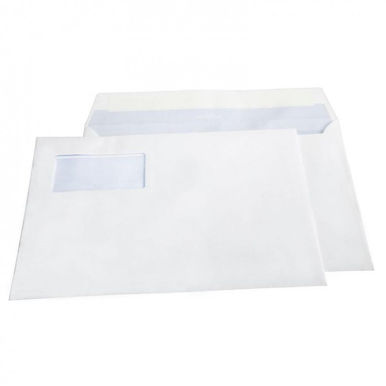 Конверт С4 (соответствует формату бумаги А4) 229×324 мм с окном 55×110 мм расположенным в левом верхнем углу. Месторасположение окна (отступы в мм): слева — 25 мм, справа — 189 мм, сверху — 30 мм, снизу — 144 мм. Выполнен из офсета 100 г/кв.м, имеет клеевое нанесение типа стрип (отрывная силиконовая лента). Предназначены для пересылки 50 листов А4 формата, что равно 250 гр.веса. Упакован 250 штук в коробке. Срок годности не ограничен. Показатель белезны бумаги — 143–149 %.