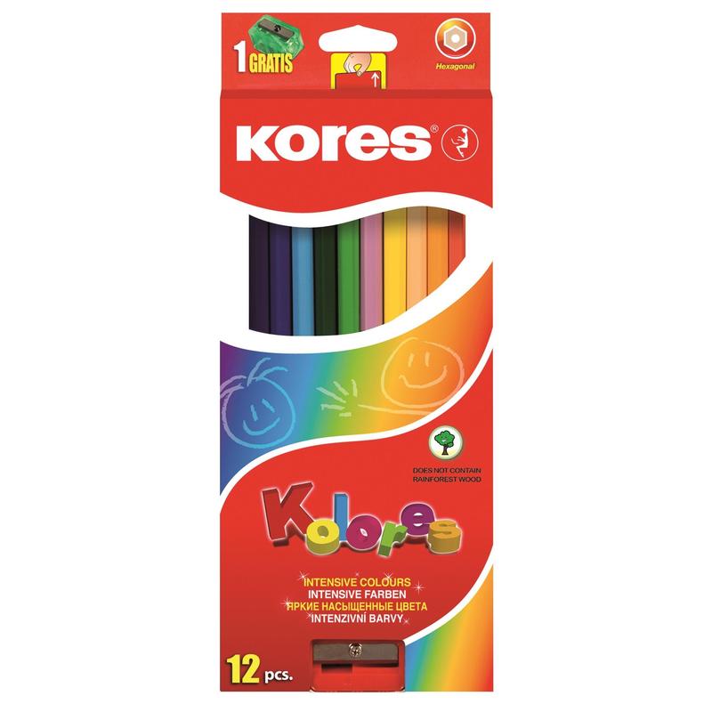 Карандаши цветные Kores 12 цветов шестигранные с точилкой