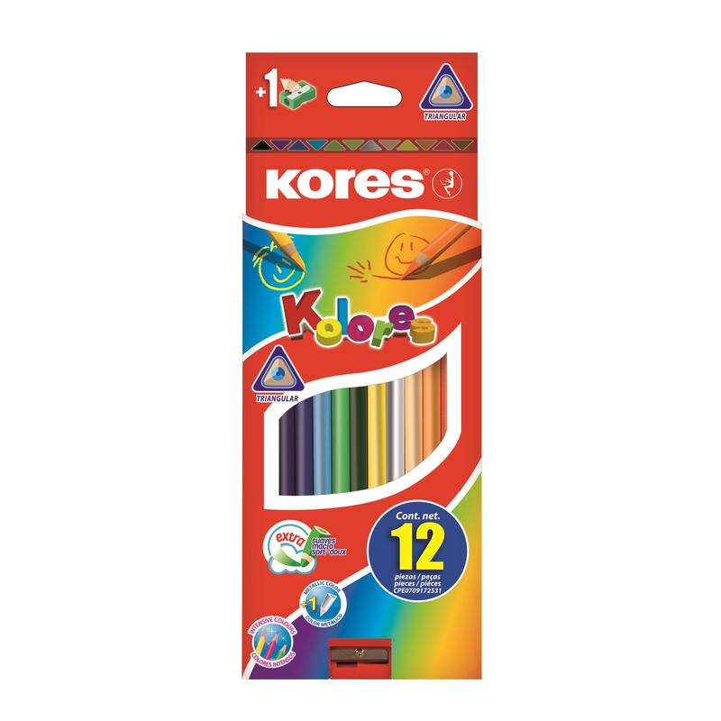 Карандаши цветные Kores 12 цветов трехгранные с точилкой