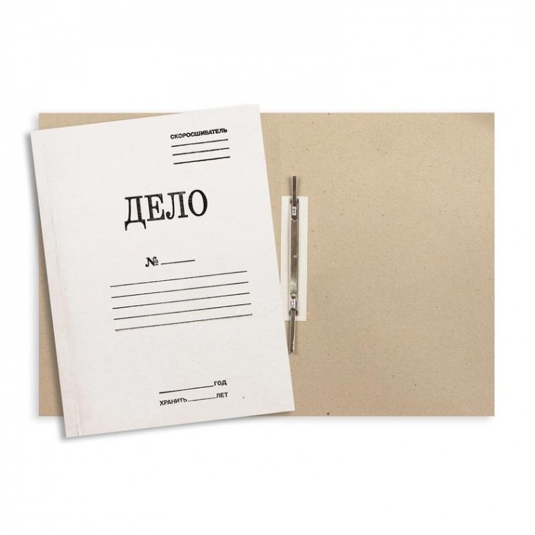 Папка-скоросшиватель Дело № формата А4 изготовлена из белого немелованного картона (плотность 360 г/кв.м). Оснащена металлическим механизмом сшивания, скоросшиватель крепится с внешней стороны. Длина усиков составляет 45-50 мм. Вместимость — до 200 листов стандартной плотности. Папки-скоросшиватели упакованы в гофрокороба по 200 штук. Допуск по размерам +/-2 мм.Стоимость указана за штуку.
