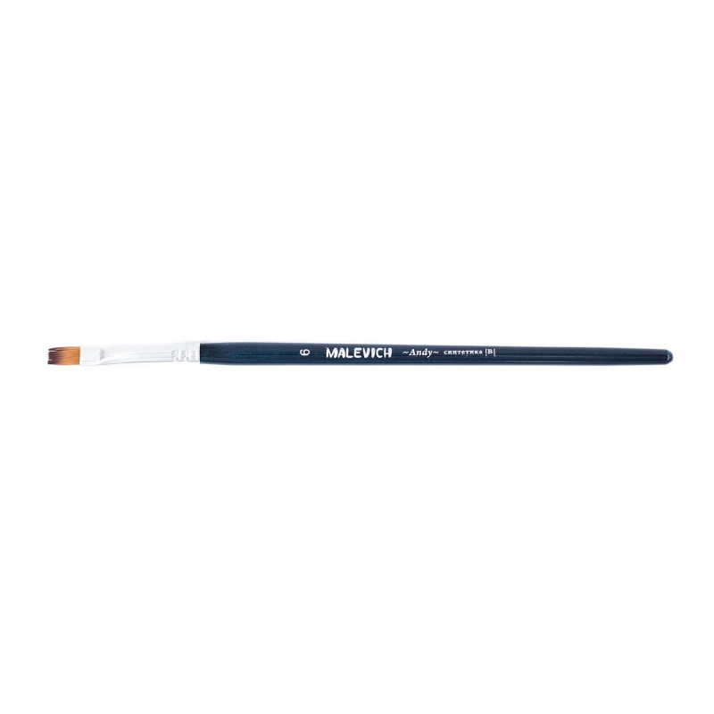 Кисть из синтетики Andy, плоская № 6. Кисть из синтетики серии Andy - это мягкая универсальная синтетика, которая подходит практически для любых видов красок. Ей удобно работать с гуашью, акварелью, акрилом, темперой. Маслом можно работать в лессировочной технике с разбавителем. Синтетика рыжего цвета с темным кончиком, ручка покрыта синим лаком, ворс закреплен втулкой из латуни с двойной обжимкой. Ручка кисти короткая - 14 см. Длина ворса (выставка) короткая. Номер кисти соответствует диаметру пучка в мм.