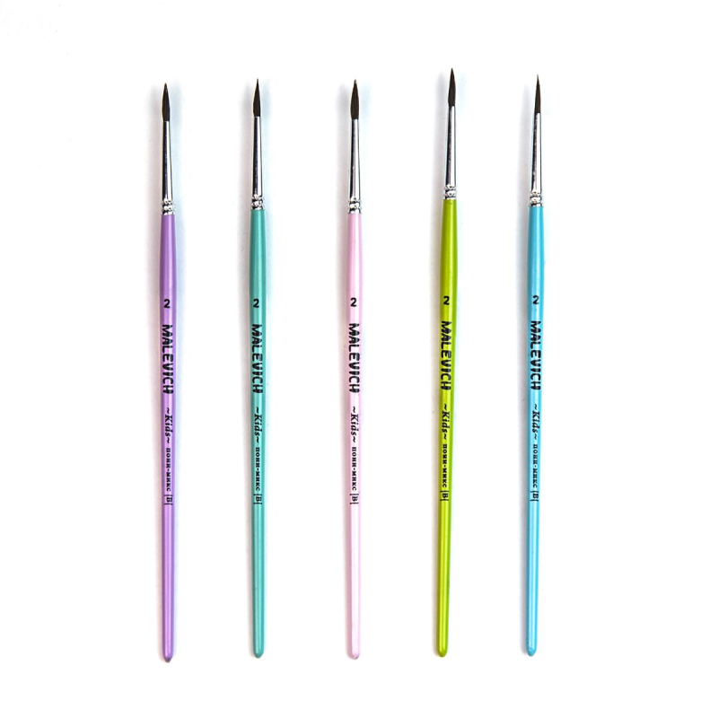 Товар поставляется без возможности выбора цвета. Кисть пони (микс). Малевичъ Kids, круглая, № 2. Сочетание отличного по характеристикам волоса и красочных разноцветных ручек делает эти кисти уникальными и любимыми юными художниками. Они отлично подойдут для акварели и гуаши. Длина ворса (выставка) короткая. Номер кисти соответствует диаметру в мм.