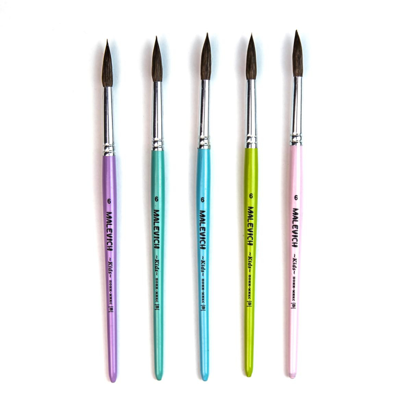 Товар поставляется без возможности выбора цвета. Кисть пони (микс). Малевичъ Kids, круглая, № 6. Сочетание отличного по характеристикам волоса и красочных разноцветных ручек делает эти кисти уникальными и любимыми юными художниками. Они отлично подойдут для акварели и гуаши. Длина ворса (выставка) короткая. Номер кисти соответствует диаметру в мм.