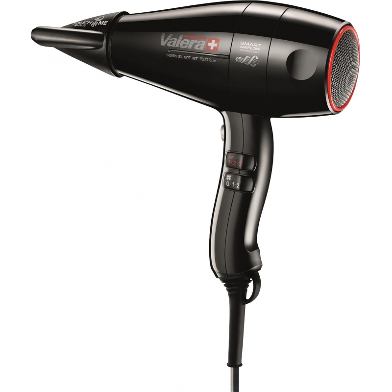 Профессиональный фен Valera Swiss Silent Jet 7500 Ionic мощностью 2000 Вт, благодаря технологии Smart Airflow, обеспечивает максимальную производительность при минимальном уровне шума! Уникальное сочетание превосходных характеристик большая мощность, высокое давление воздуха, высокая скорость потока при минимальном уровне шума - позволяет получить оптимизация пути воздушного потока внутри корпуса фена. Турмалиновый генератор производит отрицательно заряженные частицы - ионы. Благодаря ионизации волосы сохраняют естественную влагу, легко расчесываются и, не смотря на частые сушки и укладки, остаются мягкими и блестящими. Облегченный, долговечный (до 1200 часов работы) двигатель постоянного тока оснащен эксклюзивной системой вентиляции. Мотор создает мощный поток воздуха, позволяющий высушивать волосы на 20% быстрее и максимально продуктивно использовать ультратонкие насадки для укладки. Запатентованная система вращающегося крепления шнура обеспечивает свободу движений во время работы с феном. Благодаря приспособлению шнур больше не будет закручиваться, спутываться и завязываться в узлы.