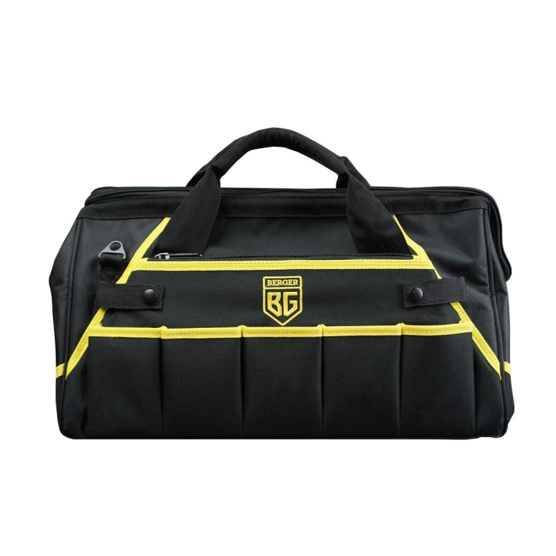 Сумка для инструмента Berger Мюриц 48x26x25 см (BG1193)Сумка для инструмента, это удобный способ всегда иметь под рукой инструмент при различных монтажных и демонтажных работах.Изготовлена из прочного синтетического водонепроницаемого материала имеет практически неограниченный срок службы, а главное, превосходно защищает инструменты даже при работе в полевых условиях.Особенности материала: Водоотталкивающая пропитка, защищает тканный материал. Материал мало подвержен повреждению и истиранию волокон.Количество отделений: 20;Особенности изделия: Высокая пластичность. Продолжительный срок эксплуатации; Устойчивость к механическим повреждениям; Высокая износоустойчивость; Легкость изделий; Простота ухода.Максимально допустимая нагрузка: 20 кг;Размер, мм: 480x260x250 мм.Внешний вид и/или характеристики товара могут быть изменены производителем в соответствии с производственным процессом.