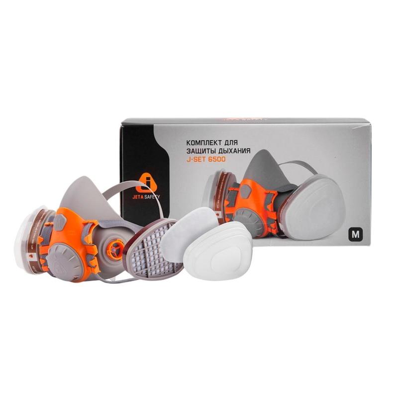 Комплект защитный JetaSafety 6500 (перчатки нитриловые, полумаска промышленная, фильтр, предфильтр, держатель) размер L