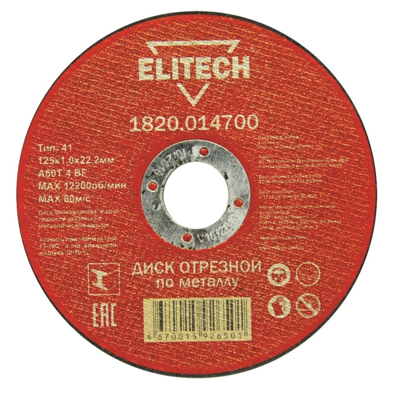 Диск отрезной по металлу 125х1,0мм ELITECH (1820.014700)
