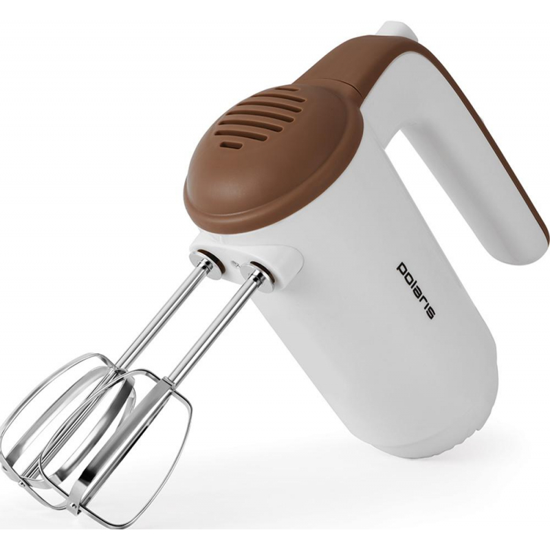 Ручной миксер Polaris PHM 7016 оснащен мощностью 700 Вт и 5 скоростными режимами включая режим "Турбо". К прибору прилагаются 2 венчика для взбивания и 2 крюка для замешивания теста. В приборе предусмотрена кнопка отсоединения насадок.Товар относится к ценовому сегменту "эконом". Имеет базовые характеристики и более простую упаковку. Отвечает основным требованиям потребления.