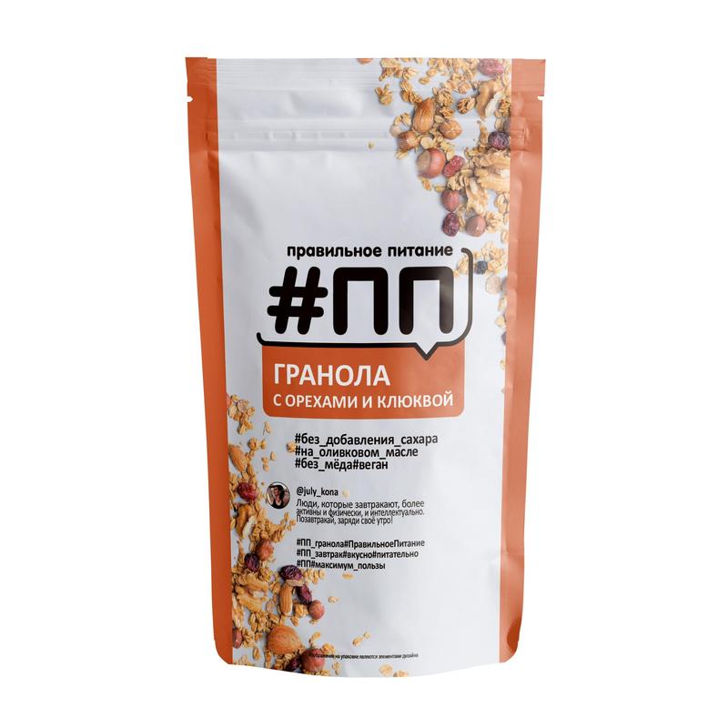 Завтрак Гранола #ПП без сахара с орехами и клюквой 350 г