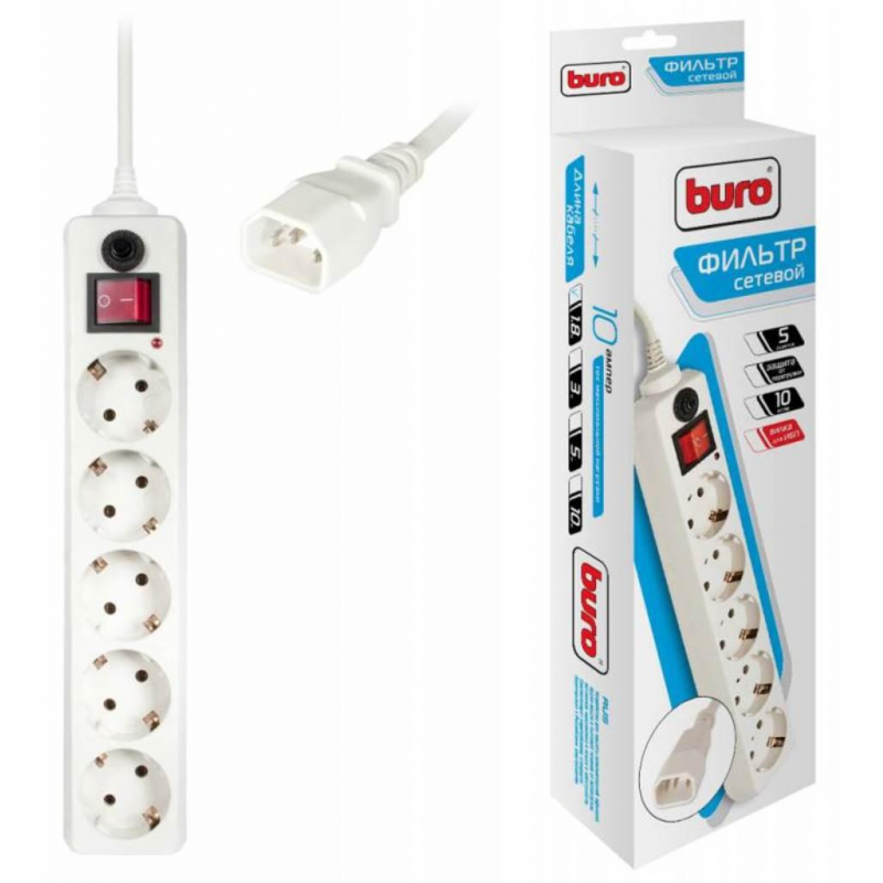 Сетевой фильтр Buro 500SH-1.8-UPS-W 1.8м (5 розеток) белый