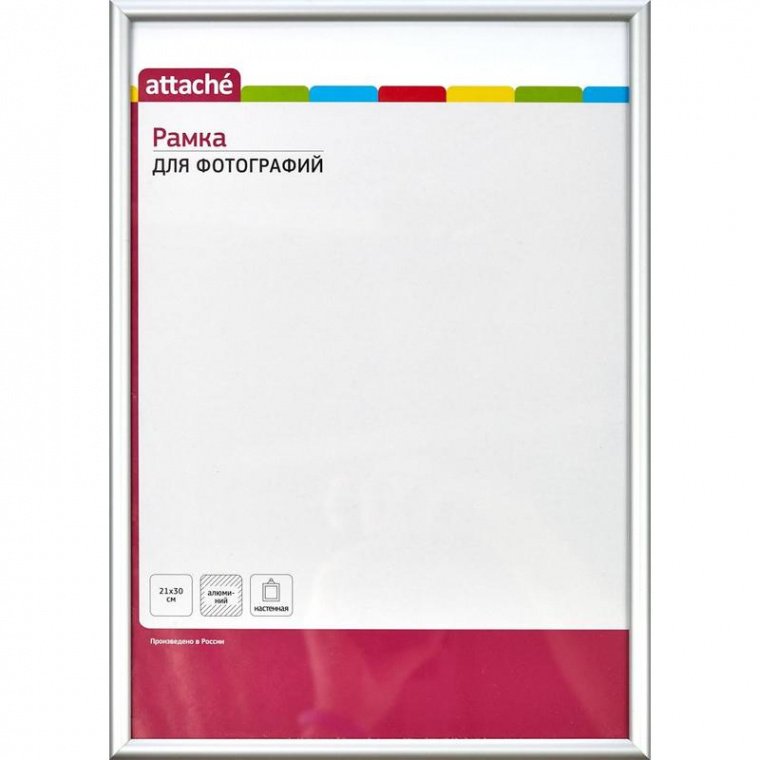 Настенная рамка для сертификатов, дипломов Attache изготовлена из алюминиевого профиля. Набор для крепления входит в комплект. Возможно вешать горизонтально и вертикально. Настольное размещение невозможно. Крепление расположено на подложке. Алюминиевый профиль крепится между собой углами с винтами и, для того, чтобы вставить фото в раму, нужно открутить их отверткой.