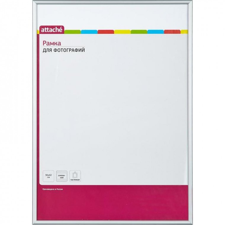 Настенная рамка для сертификатов, дипломов Attache изготовлена из алюминиевого профиля. Набор для крепления входит в комплект. Возможно вешать горизонтально и вертикально. Настольное размещение невозможно. Крепление расположено на подложке. Алюминиевый профиль крепится между собой углами с винтами и, для того, чтобы вставить фото в раму, нужно открутить их отверткой.