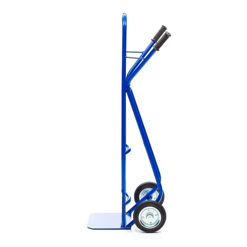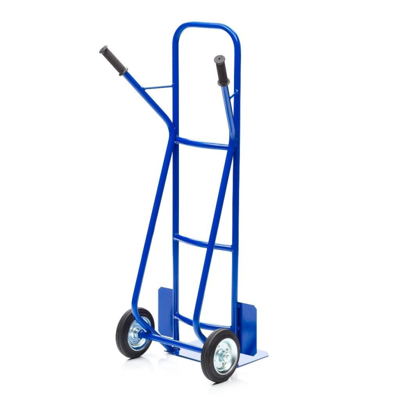 Грузовая 2-х колесная тележка кг-3-200-К используется для транспортировки различного малогабаритного груза весом до 200 кг. на небольшие расстояния. Каркас тележки изготовлен из металлической трубы диаметром 25 мм, толщиной 1,5 мм и покрыт полимерной краской для предотвращения воздействия коррозии. Грузовая площадка размером 350х280 мм обеспечивает устойчивое и надежное положение груза при транспортировке. Площадка выполнена из листа металла толщиной 4 мм Удобные рукоятки устройства покрыты резиной для предотвращения соскальзывания рук. Покрытие полимерное. Цвет синий, шагрень. Тележка комплектуется: метизами для крепления, колесами из высококачественной резины, диаметром 200 мм