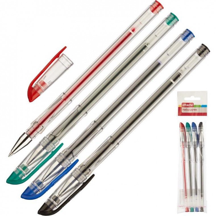 Набор гелевых ручек Attache City в мягкой упаковке, четыре цвета — синий, красный, зеленый, черный. Ручки отличаются экологичностью — выполнены из переработанного пластика. У каждой удобная зона захвата для снижения напряжения руки. Стержни сменные. Ручки обеспечивают легкое и мягкое письмо, яркие и насыщенные линии толщиной 0,5 мм. Чернила быстро высыхают, не размазываются.