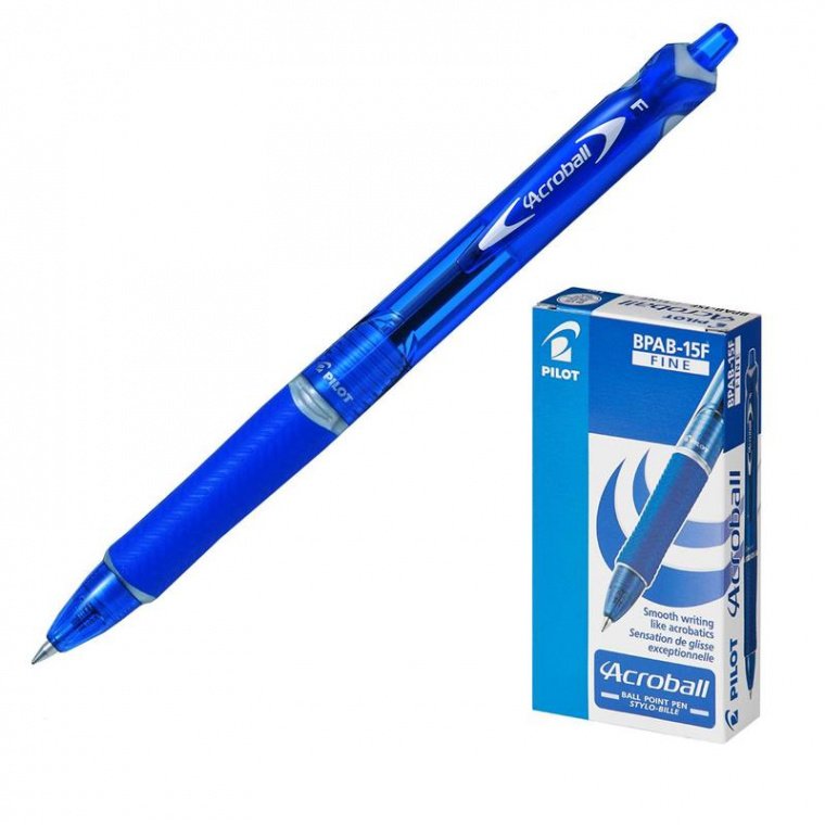 Автоматическая шариковая ручка PILOT Acroball имеет корпус из пластика и резиновую манжетку для предотвращения усталости руки. При изготовлении стержня использованы специальные чернила синего цвета, которые обеспечивают точное и мягкое письмо, сравнимое с гелевыми ручками. Толщина линии письма: 0,28 мм. Тип нанесения, который возможен на данную модель: тампопечать.