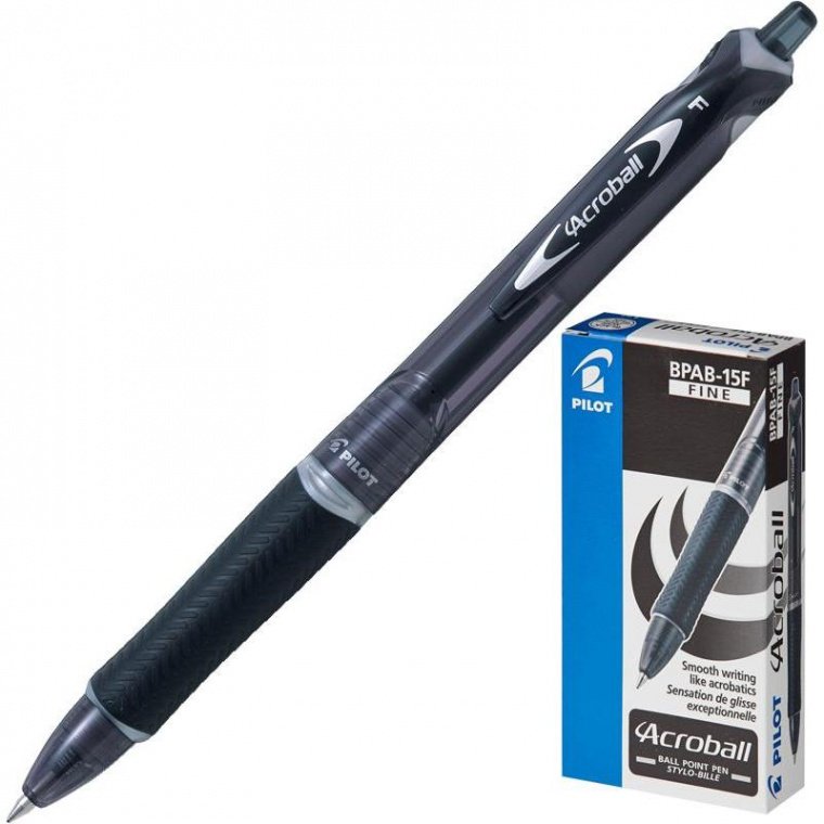 Автоматическая шариковая ручка PILOT Acroball имеет корпус из пластика и резиновую манжетку для предотвращения усталости руки. При изготовлении стержня использованы специальные чернила черного цвета, которые обеспечивают точное и мягкое письмо, сравнимое с гелевыми ручками. Толщина линии письма: 0,28 мм. Тип нанесения, который возможен на данную модель: тампопечать.
