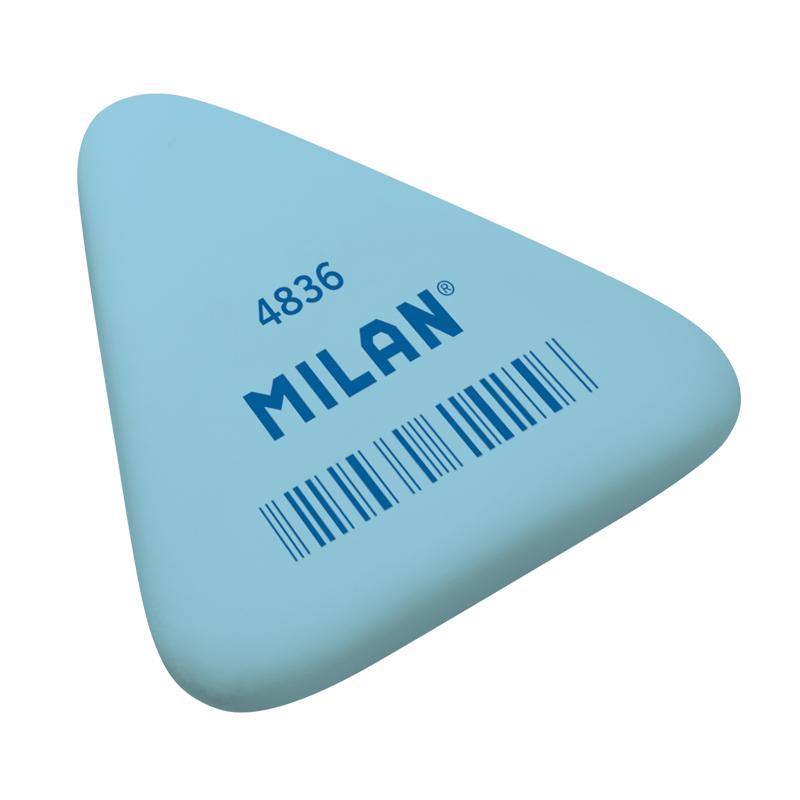 Гибкий каучуковый треугольный ластик Milan 4836. Может использоваться для стирания графитных карандашей со всех типов бумаги. Цвета в ассортименте: белый, розовый, синий (без возможности выбора). 36 ластиков в упаковке. Размер ластика: 50x44x7 мм.