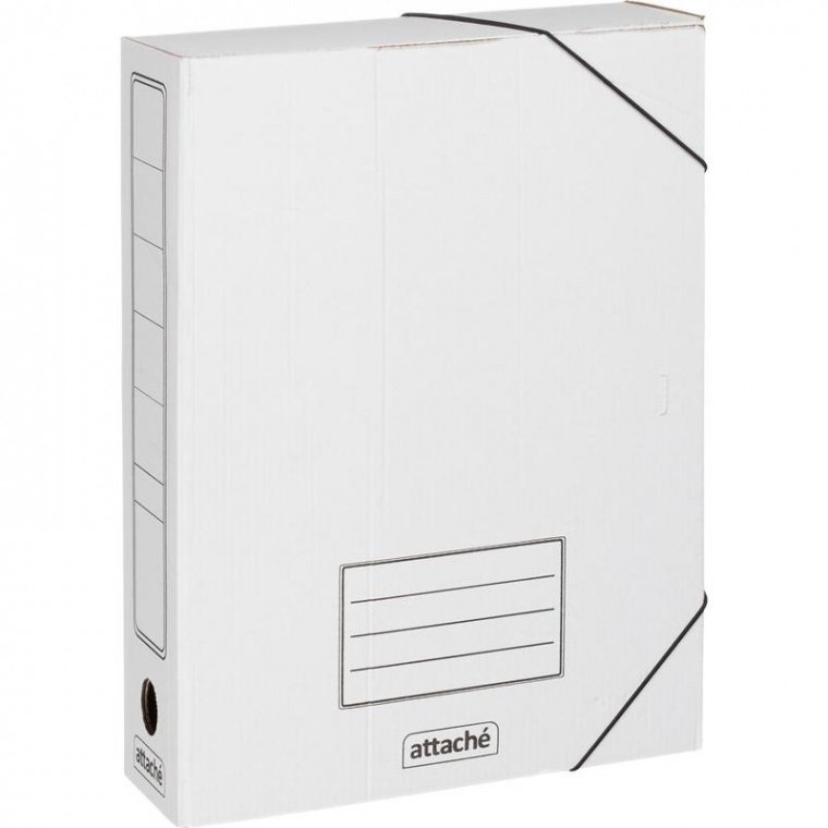 Складной архивный короб Attache формата А4 изготовлен из гофрокартона белого цвета, закрывается с помощью двух угловых резинок. Внутренние стойки-упоры выполнены из гофрокартона. Короб вмещает до 750 листов стандартной плотности, ширина корешка — 75 мм. Позволяет надежно хранить документы как в вертикальном, так и в горизонтальном положении. Поставляется в разобранном виде. Размер изделия — 252×75×322 мм.