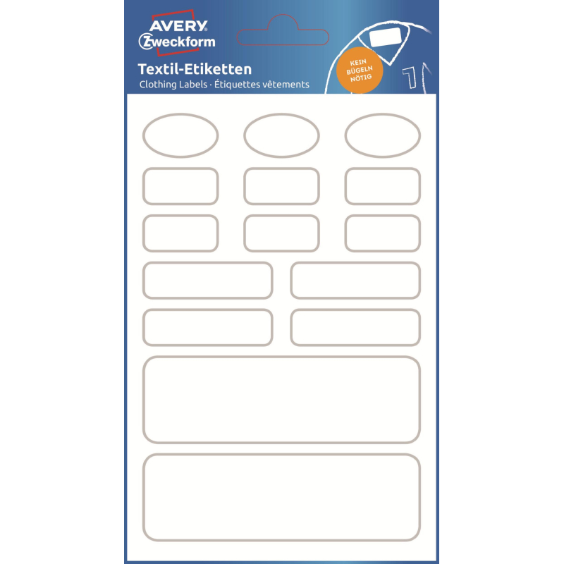 Этикетки надежно крепятся без использования утюга, выдерживают не менее 30 стирок и сушек (а после дети уже вырастут из этих вещей). Подходят для любых видов ткани кроме джинсовой. В наборе 15 этикеток разной формы и размера (2 большие этикетки 12,4x3,9 см, 4 этикетки 5,8x1,7 см, 6 этикеток 3,4x1,7 см, 3 этикетки 3,4x2 см). Подписываются от руки, не предназначены для печати на принтерах. Изготовлены из пленки ПВХ.