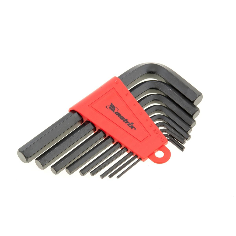 Набор имбусовых ключей из стали CrV, 9 шт, короткие, оксидированные, используются для монтажа и демонтажа крепежа со шлицем HEX. Шестигранники наиболее часто применяются для закручивания мебельных евровинтов и ремонта велосипедов. Г-образная форма ключей позволяет использовать их длинный конец в качестве рабочей части для удобства работы в труднодоступных местах. Ключи изготовлены из прочной и износостойкой хромованадиевой стали, поэтому прослужат долгое время. Оксидированное покрытие обеспечивает высокую степень защиты от коррозии. Короткие концы ключей могут быть использованы в качестве рабочих для удобства работы в ограниченном пространстве и в случаях, когда требуется приложить большое усилие. Пластиковый футляр с отверстием для подвеса позволяет компактно и удобно хранить ключи. В комплектацию набора входят ключи размерами 1.5-2-2.5-3-4-5-6-8-10 мм.