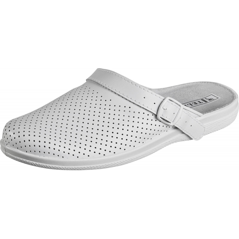 Туфли сабо Ионел являются удобной мужской обувью и используются в медицинских учреждениях, в легкой промышленности и как повседневная обувь. Изготавливаются из натурального спилка (кожа) толщиной 1.8. Поворотный регулируемый ремешок может располагаться впереди, для декорации, и сзади, для фиксации пятки. Подошва: на танкетке литьевого метода крепления с четким нескользящим протектором на облегченном ПВХ. Цвет: белый. Размер: 40.При длительном воздействии пониженных температур от -20 °C материал, из которого изготовлена обувь, теряет свои свойства и становится хрупким.