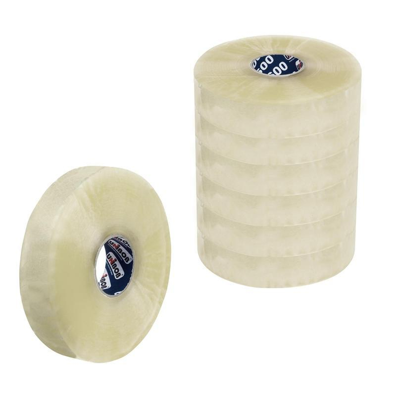 Клейкая лента упаковочная Unibob с клеевым слоем "Hot Melt" толщиной 47 мкм, прозрачная, незаменима для надежной упаковки гофрокоробов на промышленных высокоскоростных автоматических линиях. Обеспечивается продуктивная работа машин, полностью исключается возможность разрыва лент и повреждение картонных коробов. Отличается высокой начальной клейкостью (слипанием с поверхностью), стойкостью к разрыву. Ширина ленты - 48 мм, длина намотки - 990 м. Для средневесовых коробок с шероховатым картоном, не теряет свойств на открытом воздухе при температуре от 10 до +35 градусов Цельсия. Клейкая лента имеет стабильное качество и оптимальные характеристики для использования в производственных и бытовых условиях. Основные преимущества: - Высокая начальная клейкость; - Ленту с клеевым слоем "Hot Melt" можно использовать в помещениях с повышенной запыленностью, высокой влажностью (она менее чувствительна, чем лента с акриловым клеем к влажности окружающей среды); - Для автоматической высокоскоростной упаковки гофрокоробов; - Выполнение работ при неблагоприятных условиях; - Легкое разматывание рулона. Клеевой слой - синтетический каучук "Hot Melt". Материал основы: двуосноориентированный полипропилен. Вес упаковываемого груза: 7-15 кг. Количество лент в упаковке: 6. Количество упаковок в транспортном коробе: 1 .