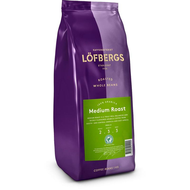 Кофе в зернах Lofbergs Medium Roast 100% арабика 1 кг (вакуумный пакет)
