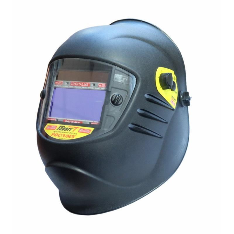 Защитный лицевой щиток РОСОМЗ для электросварщиков. Модель: НН12 Crystaline Expert FavoriT. Для защиты от механических воздействий, неионизирующего излучения, брызг расплавленного металла и горячих частиц. Корпус FavoriT из непрогораемого термостойкого материала полиамид. Наголовное крепление Rapid с плавной регулировкой. Мягкий обтюратор. Панорамное покровное стекло и подложка из незапотевающего поликарбоната. Автозатемняющийся светофильтр с регулировкой чувствительности оптических датчиков и скорости высветления. Внешняя регулировка степени затемнения (9-13). Четыре оптических датчика. Режим 'Шлифовка' (внешний переключатель). Размеры видимой зоны: 97х47 мм. оптические свойства 1/1/1/2. Диапазон рабочих температур: от -5 °C до+55 °C.