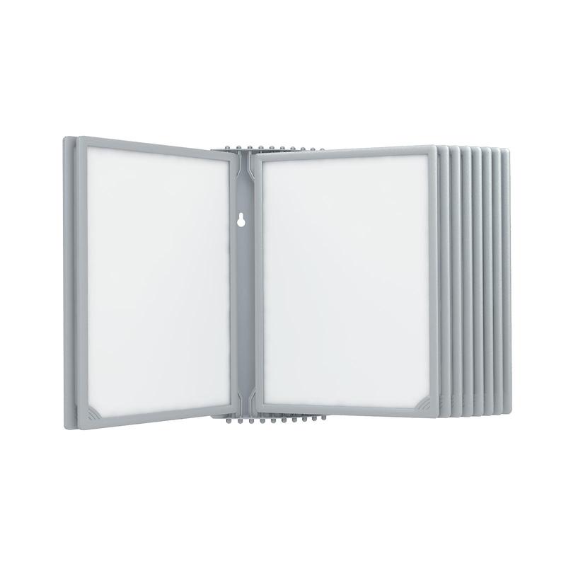 Демосистема настенная перекидная на 10 рамок формата А4. Настенный держатель изготовлен из металла, имеет два отверстия "замочная скважина" для крепления на стене. Используются усиленные пластиковые рамы (серый), которые комплектуются антибликовыми пластиковыми протекторами. Крепления в комплект не входят!