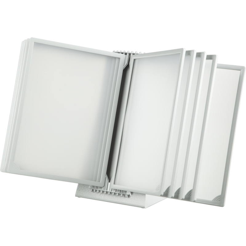 Настольная перекидная система рекомендуется к использованию для наглядной информации по клиентов или потребителей в магазинах, банках , организаций в сфере услуг, информационных бюро. Имеет металлическое основание, 10 рамок формата А4, 10 протекторов А4. Угол наклона держателя к плоскости стола - 70 градусов.