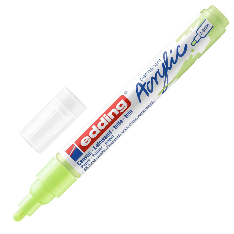 Акриловый маркер edding 5100 - яркий представитель акриловой линейки edding! Акриловые маркеры edding - целый набор инструментов для настоящей живописи. Чернила содержат высокопигментированную светостойкую и перманентную акриловую краску. Созданы для рисования как на бумаге или картоне, так и на настоящем холсте! Вы получите эффект настоящих красок, но в более удобной форме маркера. Благодаря своему круглому наконечнику с шириной штриха в 2-3 мм он представляет собой подходящий продукт для создания как достаточно тонких четких линий, так и крупных форм.