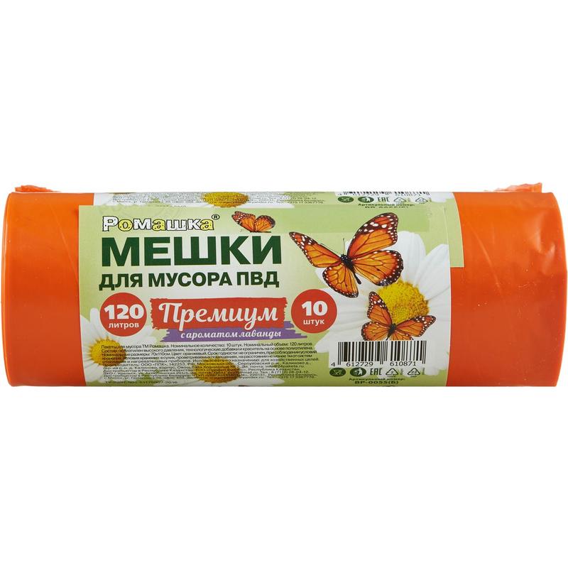Мешки для мусора на 120 л Премиум оранжевые (ПВД, 35 мкм, в рулоне 10 шт, 70х110 см)