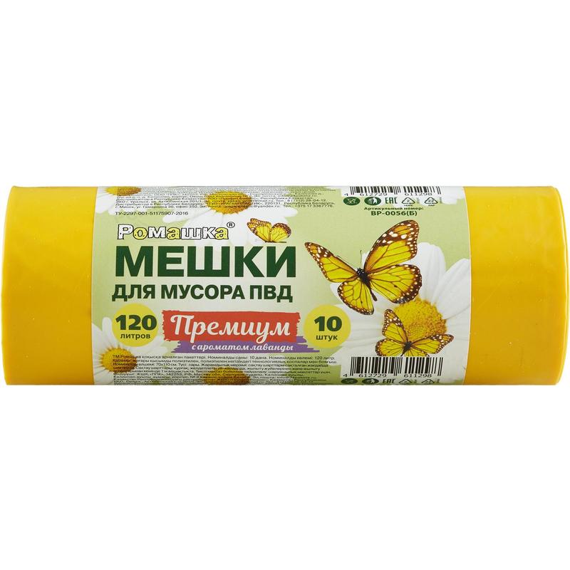 Мешки для мусора на 120 л Премиум желтые (ПВД, 35 мкм, в рулоне 10 шт, 70х110 см)