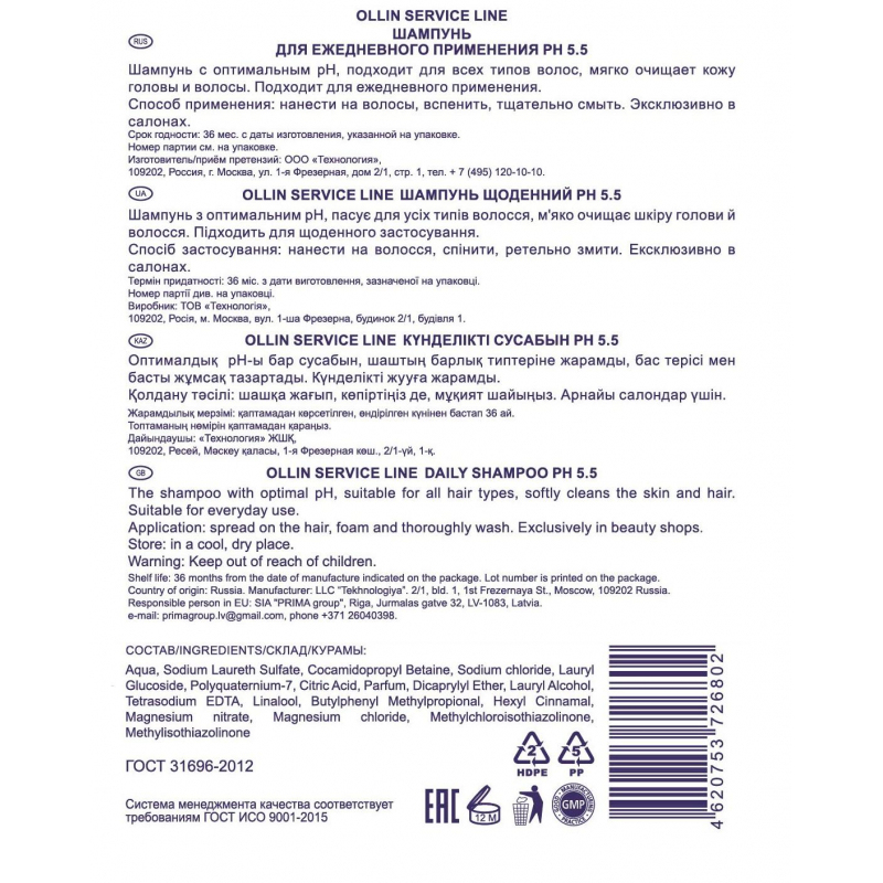 Шампунь для ежедневного применения подходит для всех типов волос. Мягко очищает волосы и кожу головы. Используется перед стрижкой или укладкой. Активные компоненты: поликватерниум-7. Применение: нанести на волосы, вспенить, выдержать 1-2 минуты, тщательно смыть. При необходимости повторить.